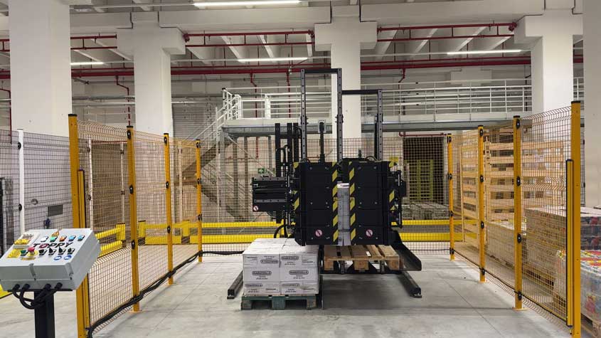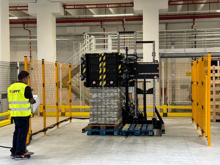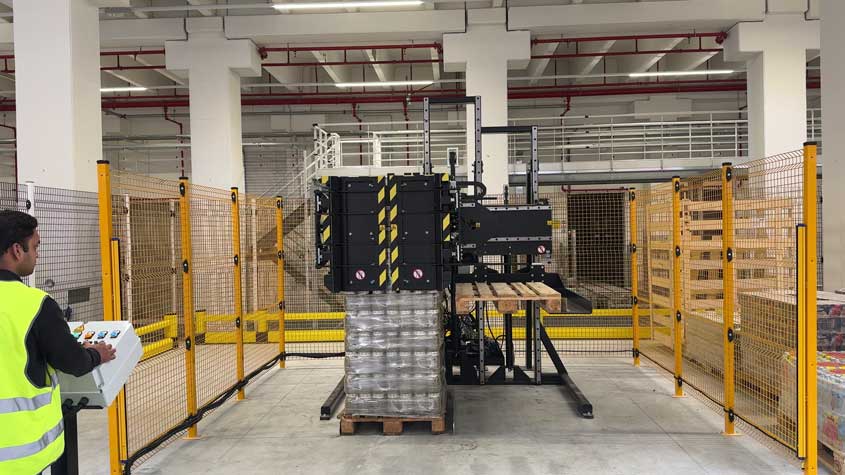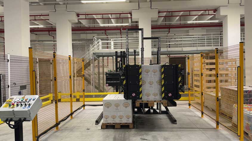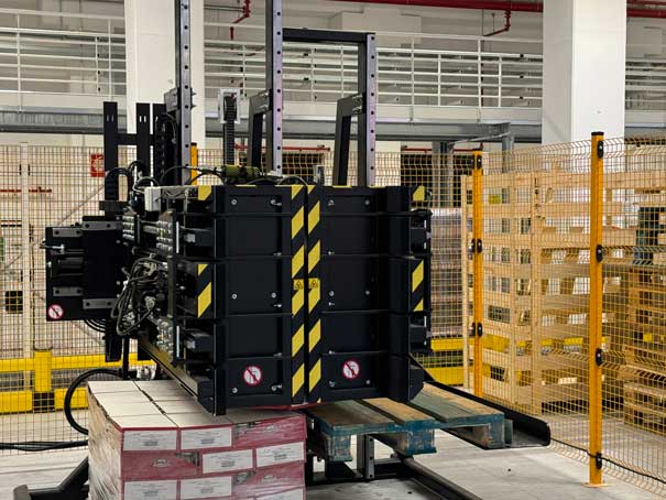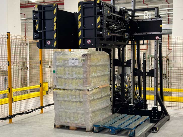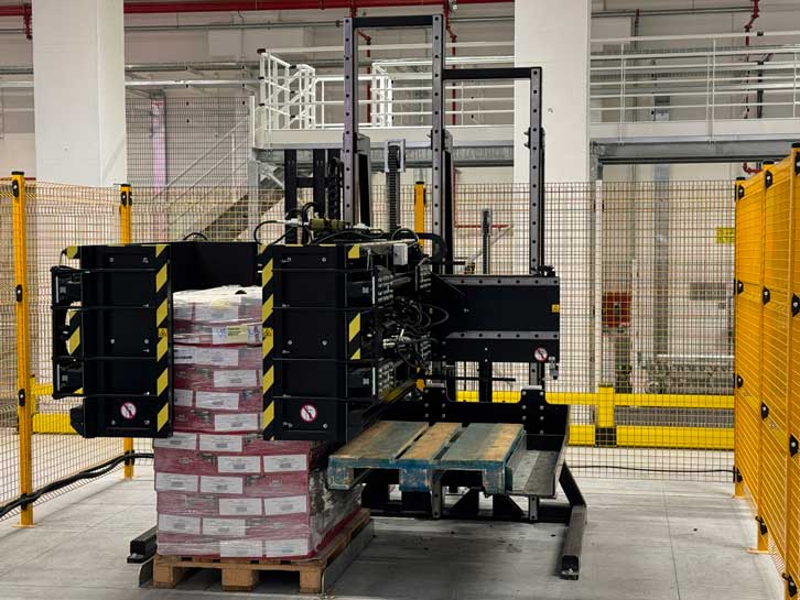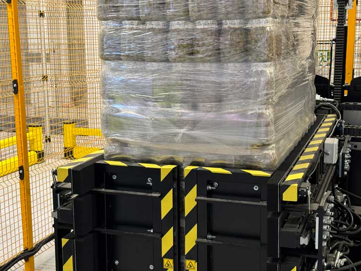 该解决方案专为需要更换托盘并同步分离产品堆叠的客户设计。