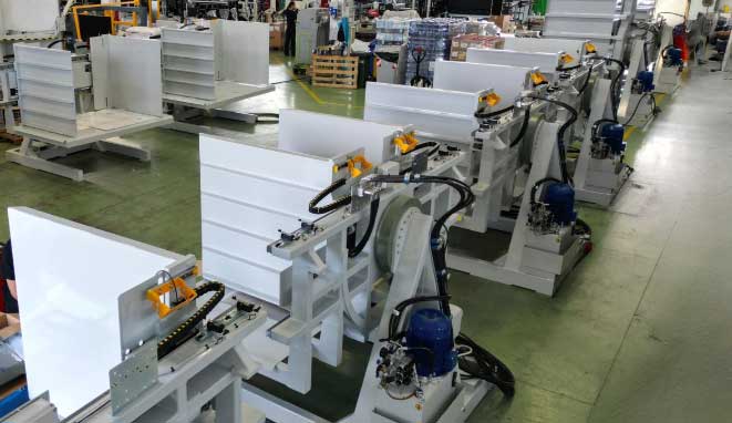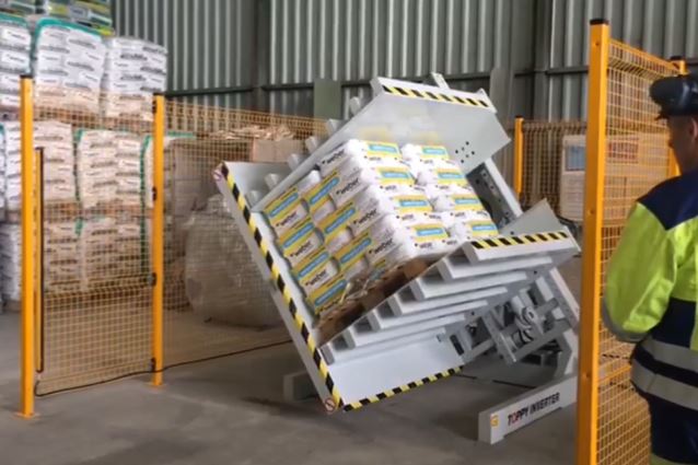 首款托盘翻转机的诞生源于其卓越的耐用性设计,有效简化两大核心流程:原托盘拆卸与目标托盘装配。
