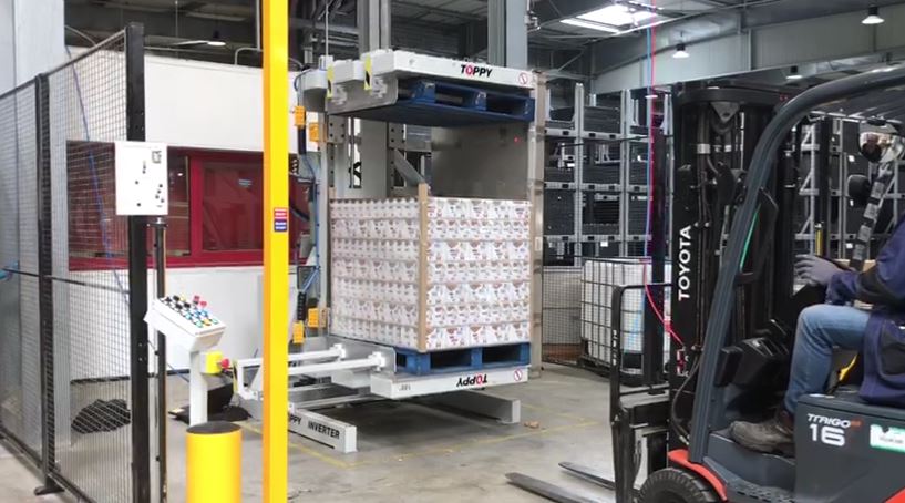 经典单钳式托盘翻转机标志着史上首个托盘更换技术的诞生,Toppy拓品作为1988年市场开拓者,由至今仍在职的首席执行官与生产总监专为多样化产品需求设计——该客户需处理形态、重量及尺寸各异的货物托盘。