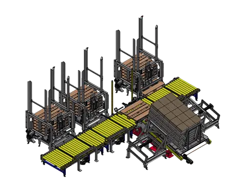 该系统的强适应性使其可轻松集成至现有生产线、高架仓库及特殊应用场景中。通过灵活配置,既能处理常规托盘货物,也可根据客户具体需求将无托盘货物(放置于滑板的货品)转移至木板上。这种模块化设计使其成为高产能流程的理想选择,同时支持进一步定制以适应特定作业需求。