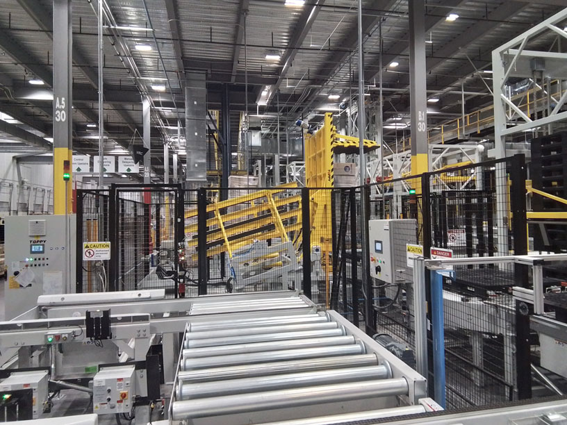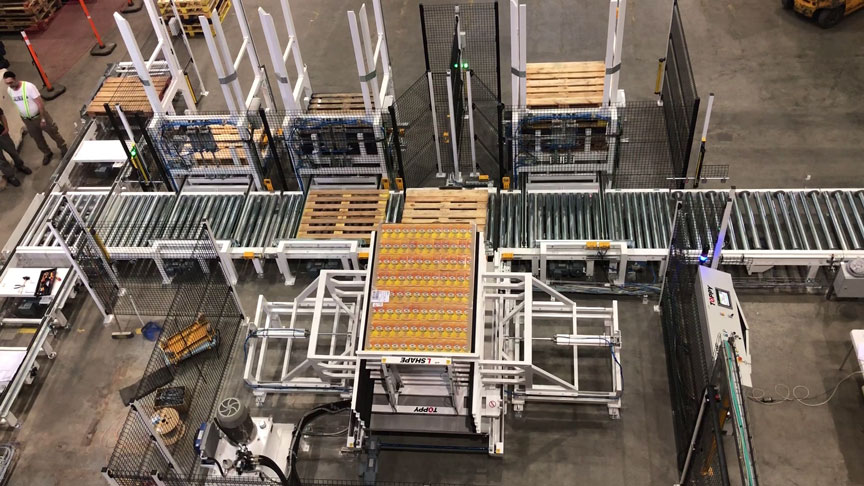 Toppy拓品自动化托盘交换机在现代化仓库中的应用实景:多层传送带协同作业与托盘装卸流程