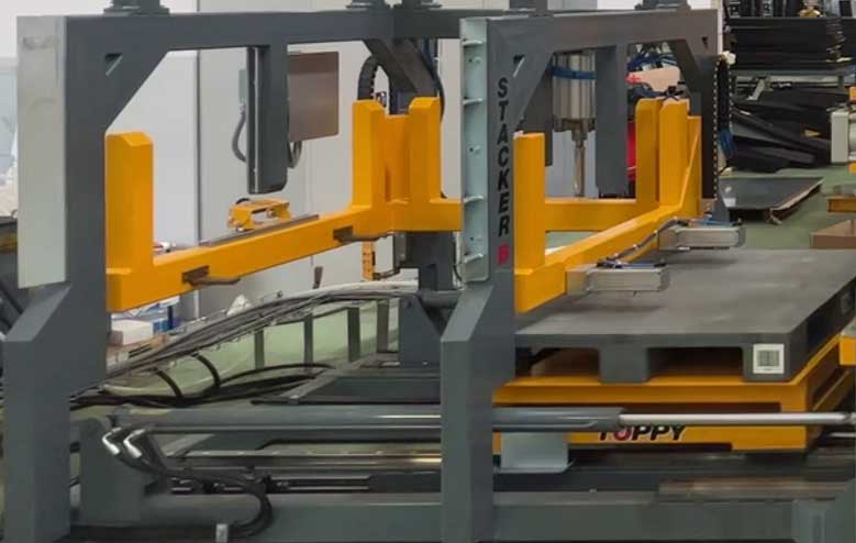 两个托盘库均与机器循环同步运行,全程保持自动化操作。